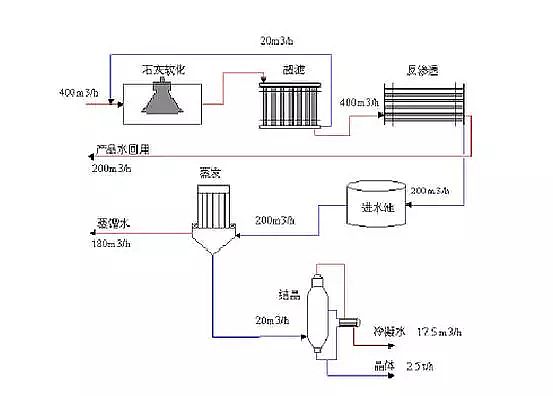 (8)蒸餾水收集后,供廠內需要高質蒸餾水的工藝流程使用,在某些條件下,結晶器產生的晶體,是很高商業(yè)價值的化工產品。