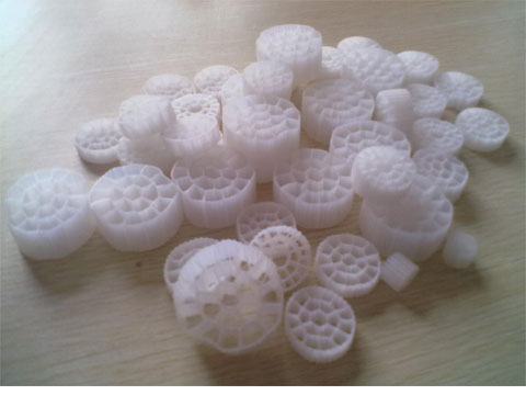 仁源多面空心球填料采用聚丙烯塑料制成球狀,在球中部沿整個周長有一道加固環 ,環的上下各有十二片球瓣,沿中心軸呈放射形布置,適用于二氯化碳脫氣塔,接觸反應塔等裝置。